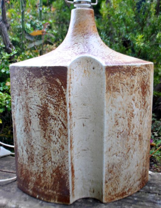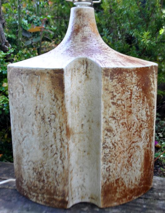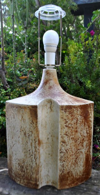 Große Søholm Keramiklampe, 20. Jahrhundert. Bornholm. Dänemark. Steingut. Hellbraun glasiert. Gestempelt. H.: 44 cm. Höhe mit Elektroinstallation: 64 cm. B.: 34 cm.
