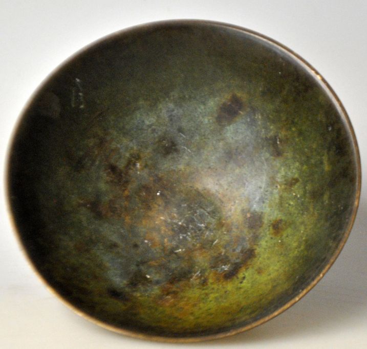 Kleine dänische patinierte Bronzeschale, Art Deco, ca. 1930. Auf kleinem Standrand. Gestempelt: Echte feuerfeste Bronze. H.: 5 cm. Durchmesser: 12,5 cm.