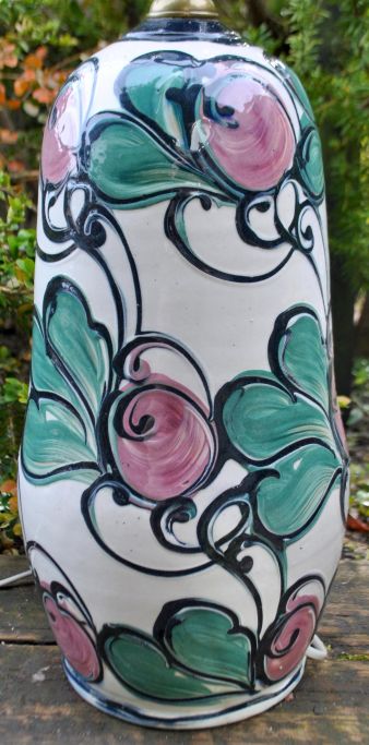 Tischlampe von Hornbæk Keramik, 20. Jahrhundert, Dänemark. Glasur in Weiß, Schwarz, Grün und Rosa. Gestempelt: HK. Höhe: 58 cm. Durchmesser: 16 cm.