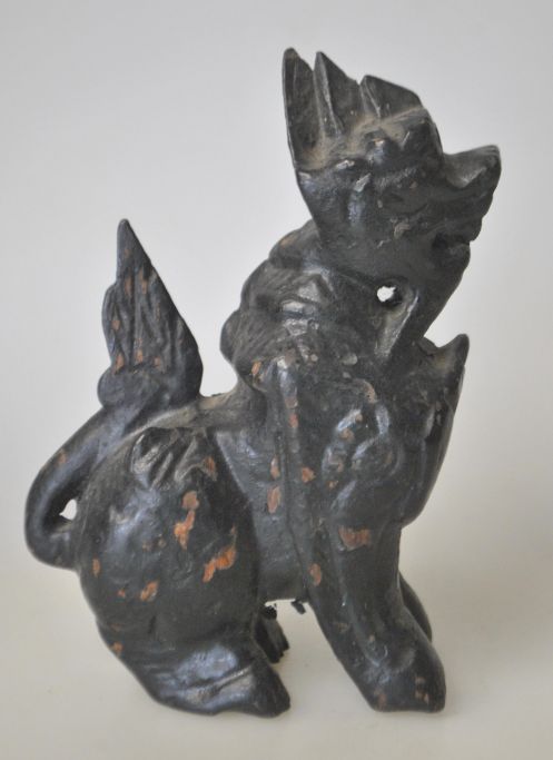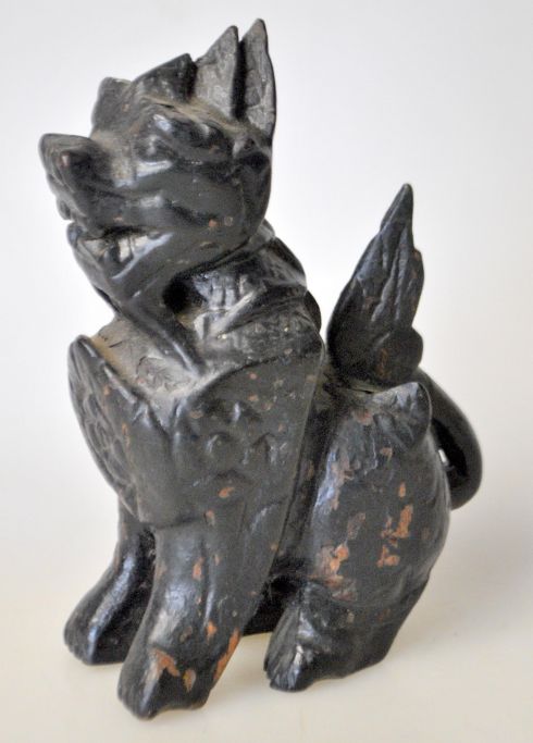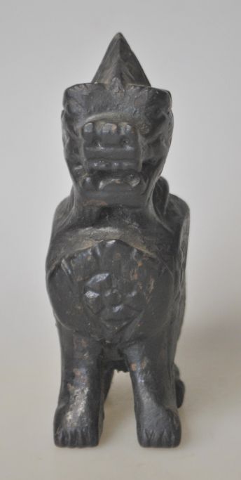 Chinesische geschnitzte Löwenfigur aus Holz, 19. Jahrhundert. Schwarz bemalt. Höhe: 12 cm.