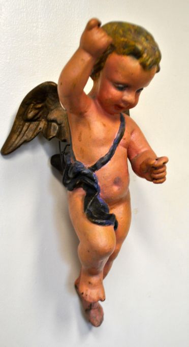 Barocker Engel, 18. Jahrhundert. Aus bemaltem Zinnguss.