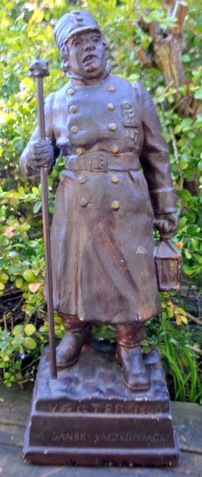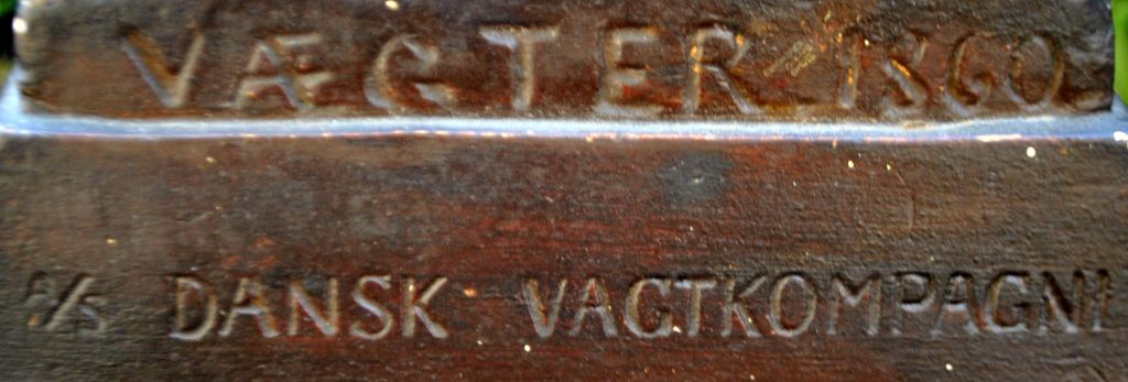 Am Fuß befindet sich die Inschrift: A/S Dansk Vagtkompagni. Dies ist heute ein Zweitname des Sicherheitsdienstes G4S.