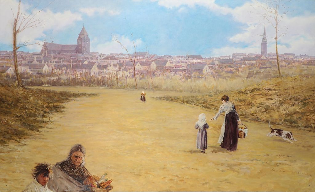Kowalczyk, Andrzej Jozef (1951 - ) Polen: Ansicht von Aarhus. Öl auf Leinwand/Platte. Signiert 2006. 193 x 320 cm.